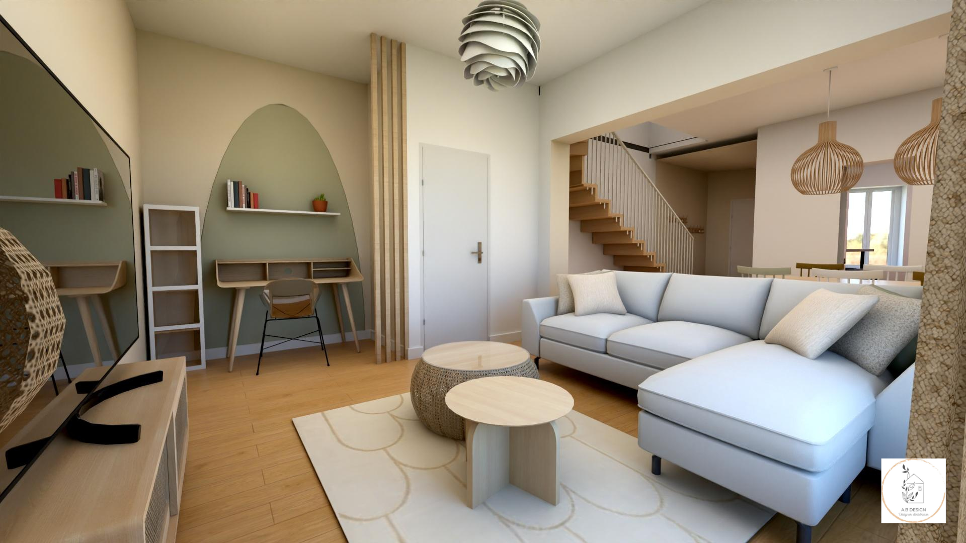 L'ambiance souhaitée était celle d'une maison de vacance aux tonalités du sud, du blanc, des beiges et des tons neutres doux, des matériaux naturels.