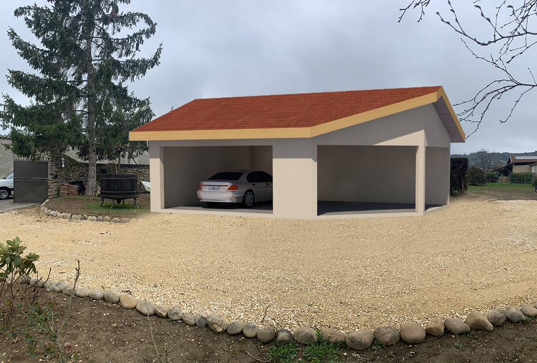 Un abri pour voiture en maçonnerie traditionnelle enduite