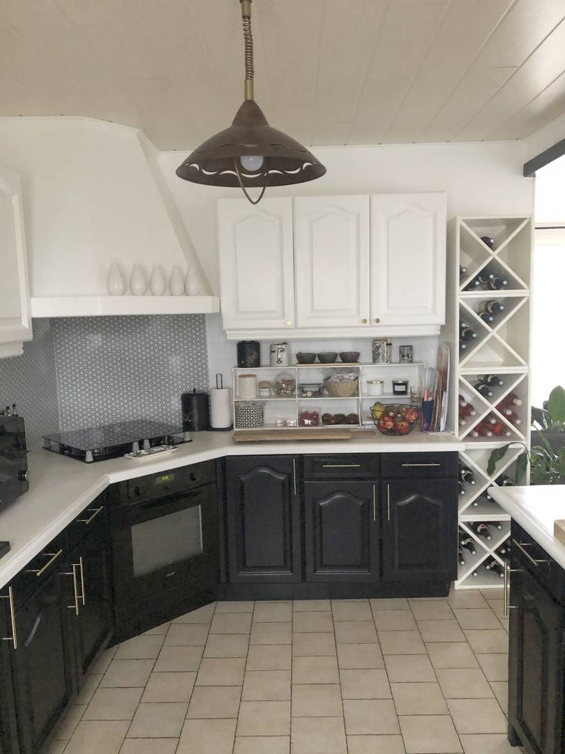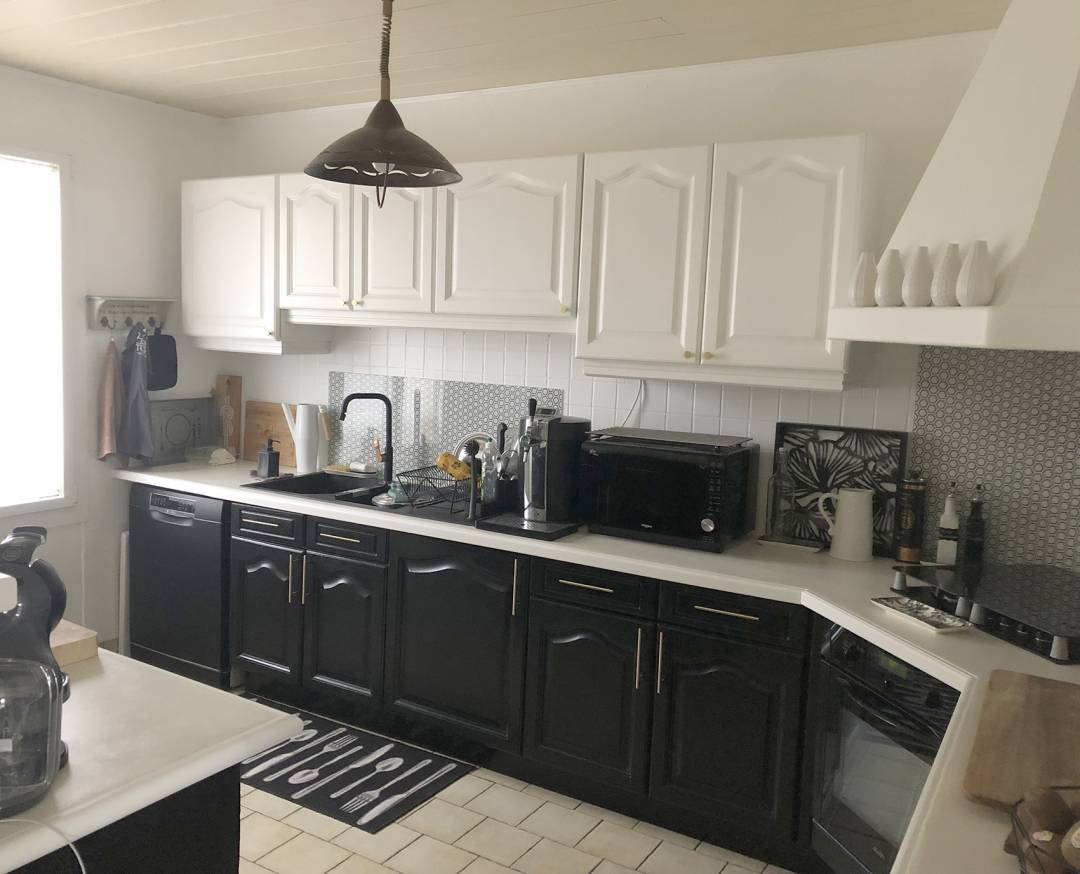 Rénovation d'une cuisine en chène des années 80 dans une maison de plein pied. Mes clients n'avaient pas forcément le budget pour changer totalement leur cuisine alors ils ont fait appel à moi pour les conseiller, rénover et mettre au gout du jour leur cuisine ouverte sur salon.  Définir un style en collaboration avec les clients, mix entre contemporain et industriel , optimiser les plans de travail, choix des matériaux, devis artisans pour la main d'oeuvre....