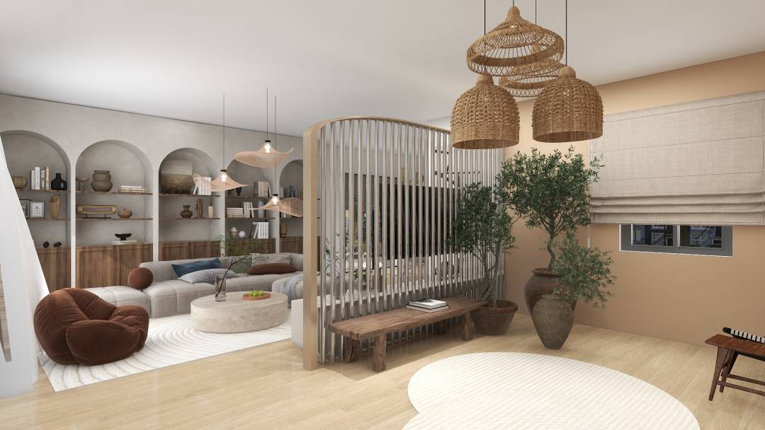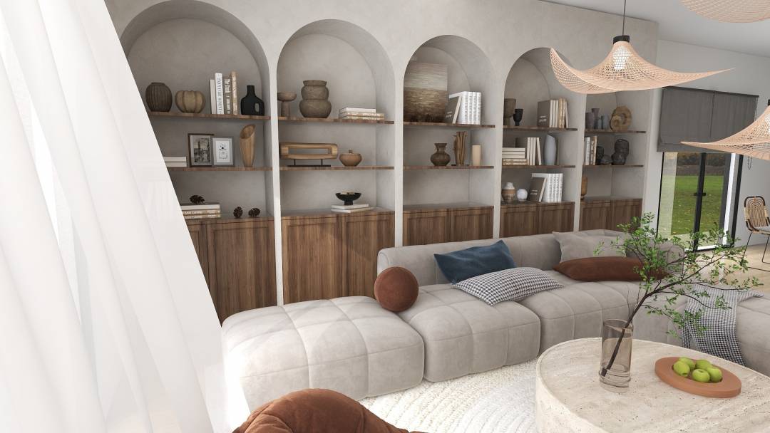 Ambiance élégante et chaleureuse avec un esprit minimaliste. Un cocon épuré aux couleurs neutres et claires. Le principe a été de créer une décoration fonctionnelle avec de l’espace, de la lumière en ne gardant que l’essentiel. Cette ambiance calme a été rehaussée par quelques éléments de l’esprit Wabi Sabi pour apporter Nature, chaleur et bien-être. La perfection de l’imperfection.