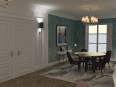 Salon pour la famille avec salle à manger, cheminée et coin de répos.