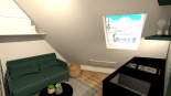 Le propriétaire souhaite transformer cette ancienne chambre de bonne en une location Air B&B incluant une salle d’eau avec WC, un coin cuisine et un espace salon modulable. Ses +: sa superbe vue sur la Tour Eiffel et sa luminosité. Ses -: sa mansarde sur les 2/3 de la surface.