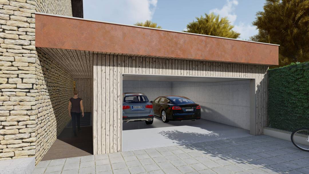 [ EXTENSION GARAGE ] Conception d’un projet d’extension à usage de garage, attenant à une maison individuelle de caractère typique de la région. Mise en œuvre d’une toiture plate vegetalisée, pour limiter l’impact visuel du projet situé sur deux limites séparatives et en contrebas de la route. Au niveau des matériaux : acier corten, bardage bois douglas patiné, crépis ton pierre, menuiseries aluminium RAL 7048… Permis de construire établi par notre équipe et accepté du premier coup !