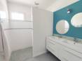 Une salle de bain à rénover qu'il fallait rendre plus lumineuse du fait d'une fenêtre unique côté douche et pour plaire aux deux jeunes filles de la maison, une ambiance claire qui réveille doucement le matin.