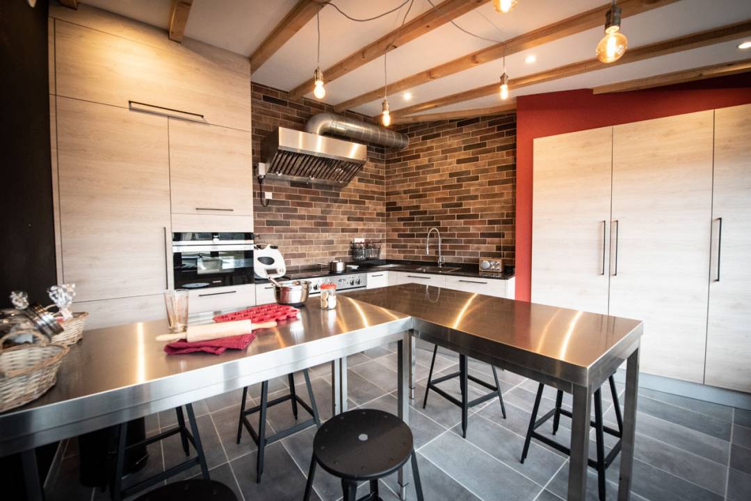 Pour ce nouveau projet, pas de rénovation mais une conception ! Suite à un changement de parcours professionnel, notre cliente avait besoin d'une dépendance pour créer son atelier culinaire. Cet espace devait pouvoir recevoir ses "élèves" pour une formation autour du sans gluten. Une activité quotidienne pour cette mère dont les enfants y sont allergiques. Les exigences de notre cliente étaient de pouvoir disposer d'un espace permettant d'accueillir six personnes, la création d'une salle d'eau (douche, wc) et d'une cuisine assez grande pour travailler sereinement. Pour l’ambiance, ma cliente s’est tournée vers une atmosphère industrielle, à l’image d’un vieil atelier, mais avec plus de chaleur et de confort. Pour pouvoir démarrer le chantier, un dossier de déclaration préalable a dû être déposé en mairie.