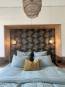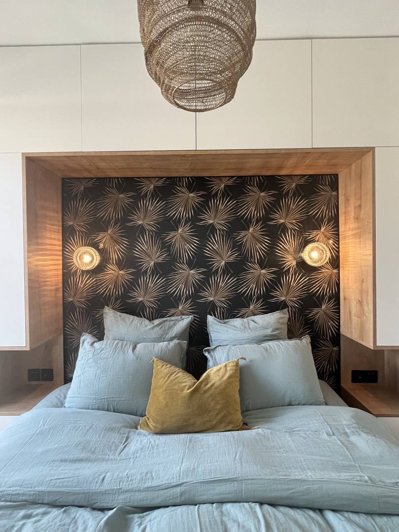 Réhabilitation complète de ce T3 dans un ancien immeuble Marseillais. Mission complete : conception des plans d'amménagement, consultation des entreprises, suivi de chantier. Les objectifs étaient multiples : Redonner du cachet à cet appartement doté d’éléments propres à l’ancien, tout en apportant une décoration moderne aux notes méditerranéennes Apporter de la lumière à la pièce aveugle de 6m2 qui deviendra un bureau Créer des rangements, qui manquaient à l’agencement existant Rénover entièrement la salle de bain La grande verrière intervient comme pièce principale de l’espace séjour et permet d’agrandir visuellement l’espace, en laissant apparaitre un grand papier peint panoramique au motifs évoquants les calanques, clin d’oeil à la région. Une déco ultra graphique, réchauffée par des matériaux tels que le bois ou cannage apportent modernité tout en restant fidèle à l’environnement méditerranéen qui l’entoure La restauration de la cheminée ancienne en marbre, le parquet en bâton rompu, ou bien les portes en moulures redonnent son charme à l’espace, souligné par des touches d’époque telles que les boutons de porte en laiton, les radiateurs en fonte ou les interrupteurs en porcelaine. On créer du rangement dans la chambre grâce à un pont menuisé autour du lit, et voila un petit cocon prêt pour recevoir ses nouveaux occupants !