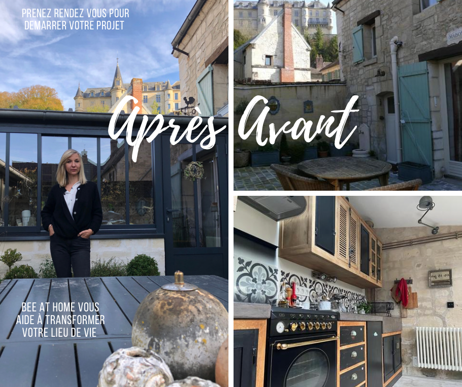 Afin de garder l'esprit ancien de la maison et du village la nouvelle pièce a été réalisée avec un soubassement pierres, une verrière type atelier et un toit en zinc. Les meubles de cuisine ont été réalisés sur mesure. Le sol en béton ciré et les carreaux de ciment en crédence donne un côté minéral et intemporel.