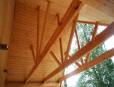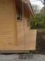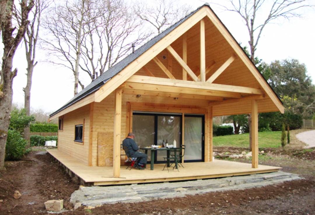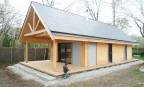 Maison de vacances à coût minime. Le projet est de construire une petite maison minimaliste au bord de la foret. Conçu aux lignes pures et armée d’une structure simple elle prend en compte la forme du terrain d’implantation. Elle respecte toute la végétation du lieu. Le rythme régulier de la charpente, tous les trois mètres, est prévu pour héberger une chambre, salle d’eau, séjour et cuisine. Cette structure est prolongée en terrasse couverte de façon à créer une continuité vers l’extérieur, le jardin, et le paysage avoisinant. La forte pente du toit est imposée par la commune.