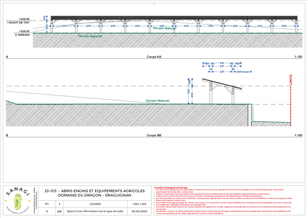 Permis de construire pour l'abri agricole respectueux de l'environnement du Domaine du Dragon