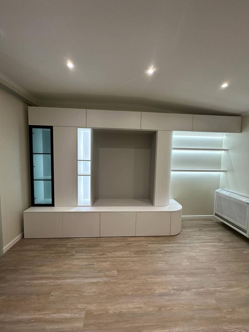 Rénovation totale d'une entrée, séjour avec une étude PMR pour une meilleure circulation du propriétaire en fauteuil roulant.