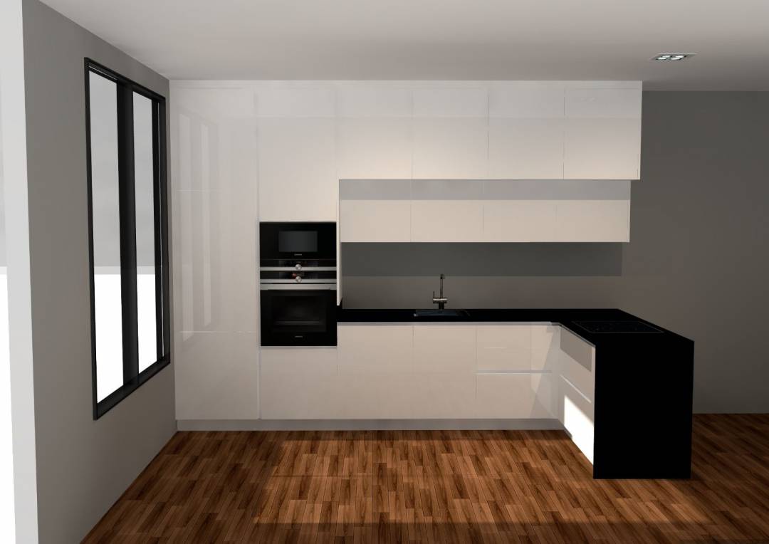 Réalisation d'une cuisine sur mesure - Blanc Brillant - ABET LAMINATI*