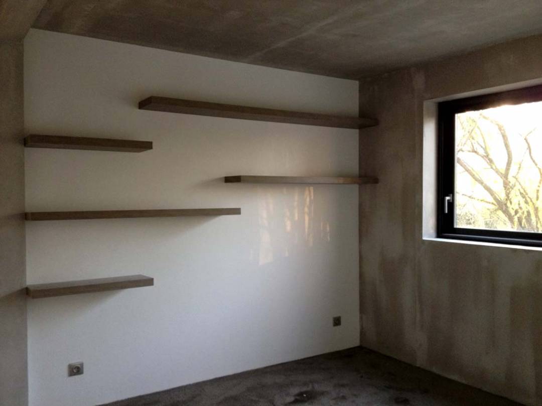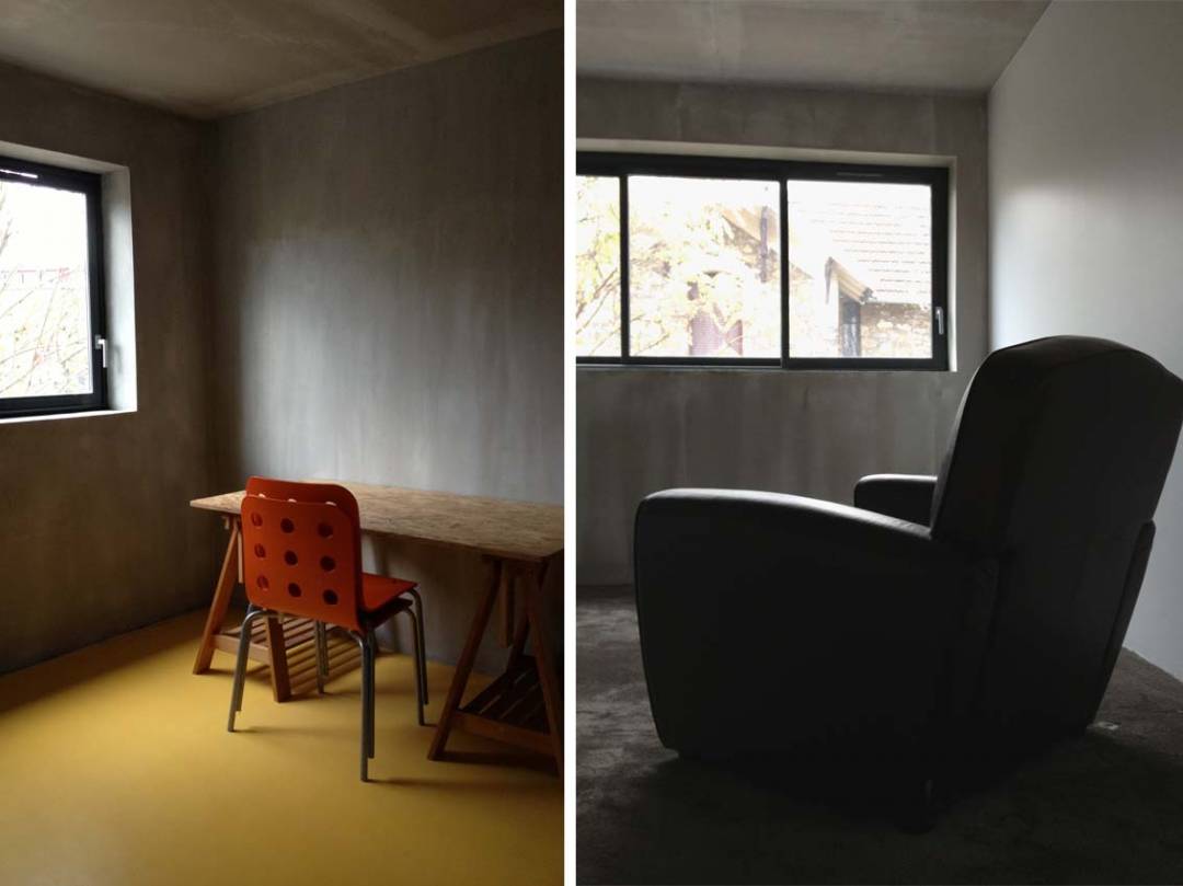 "Un parallépipède en béton"... Le maître d'ouvrage souhaite une maison contemporaine, en béton apparent, aux volumes sobres. Le projet s'inscrit donc dans la surface laissée par la PLU, dans un parallépipède en béton, sans redent, ni sailli. Un bardage en mélèze à claire voix habille la façade. A l'intérieur, les matériaux sont bruts, l'ambiance industrielle. Le parquet de chène au rez-de-chaussée et les linos colorés à l'étage habillent les pièces en béton. Performante thermiquement, la maison est totalement isolée par l'extérieur. Le chauffage est au sol et la ventilation reste, par choix, naturelle. Les arbres existants sont préservés et une terrasse en bois permet l'accès au jardin. L'ensemble est prévu pour accueillir, à terme, un étage supplémentaire ou un piscine sur le toit.