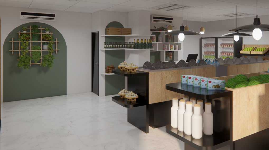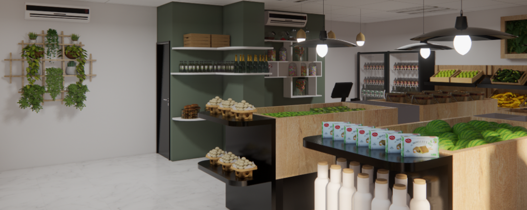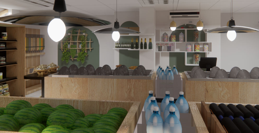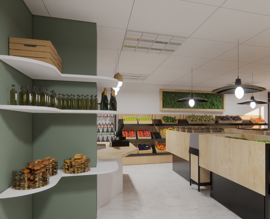 Tout nouveau pour moi ce type de projet mais non moins intéressant. Un vrai challenge qui m'a value quelques recherches sur le mobilier professionnel réservé aux primeurs et alimentations.