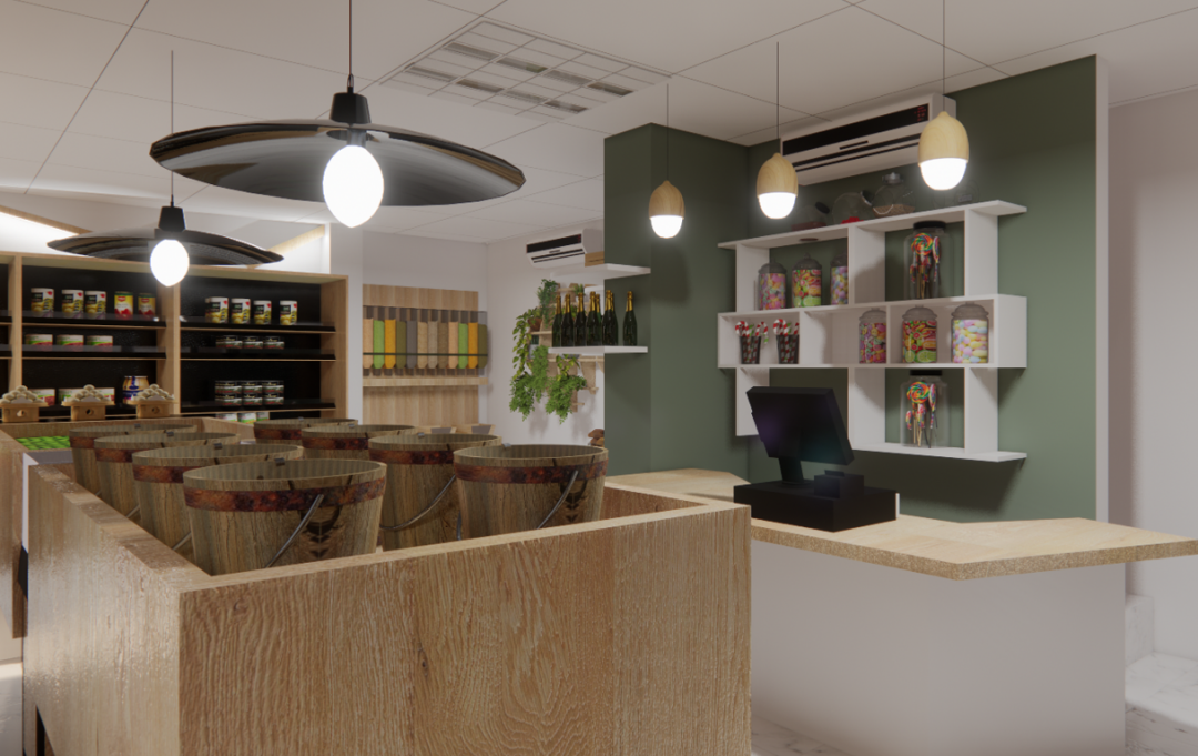 Dans quelques jours, je fais la présentation du projet de conception au client pour lui permettre de lancer la commande du mobilier sur-mesure, et être prêt pour une ouverture souhaitée début 2024.