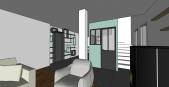 L'idée était donc de modifié l'espace existant sous l'escalier en l'agrandissant pour aménger cet espace. Cela entraînera par conséquent un réajustement de la pièce de vie.