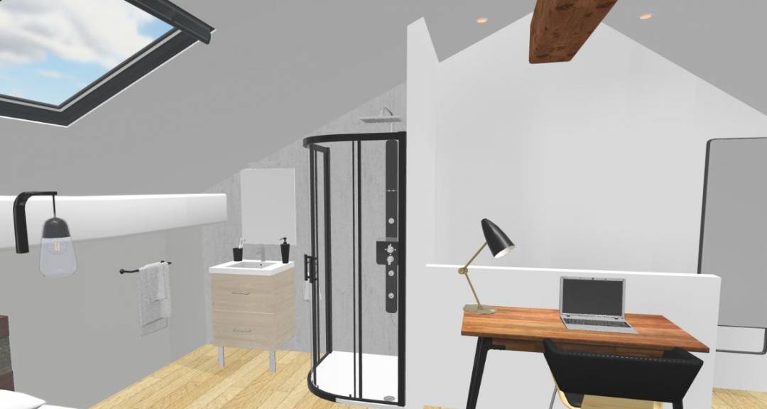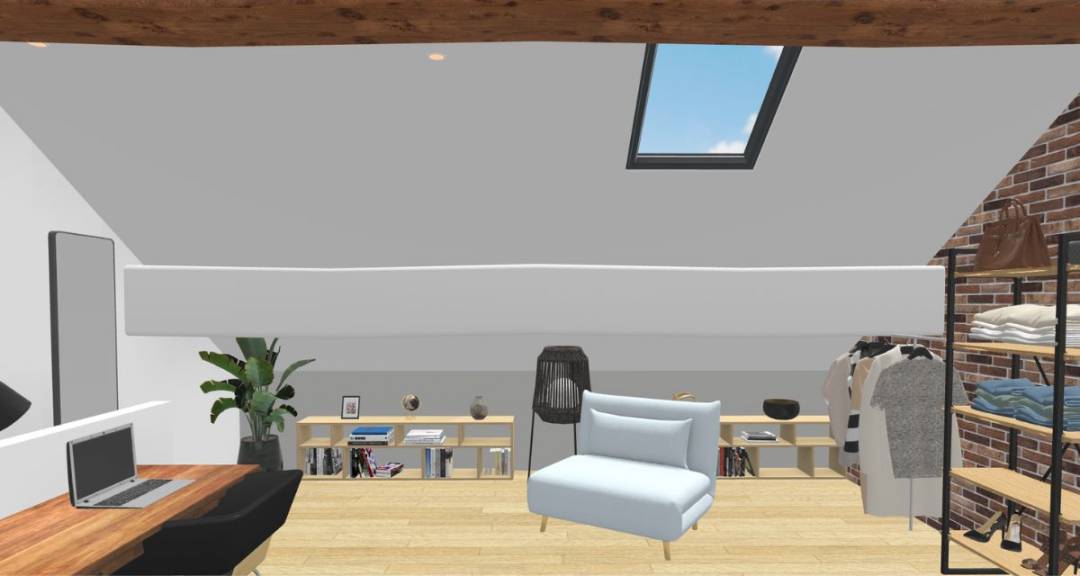 Le souhait de mes clients était d'optimiser l'espace afin d'y intégrer une chambre avec salle d'eau, un dressing, un bureau et un coin lecture