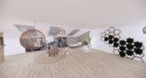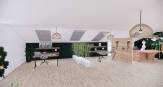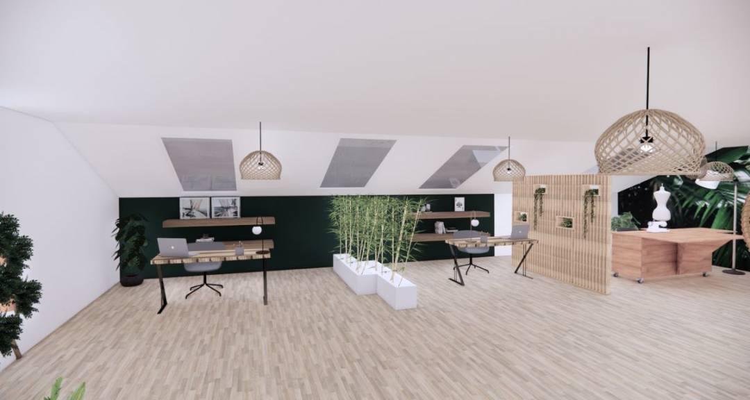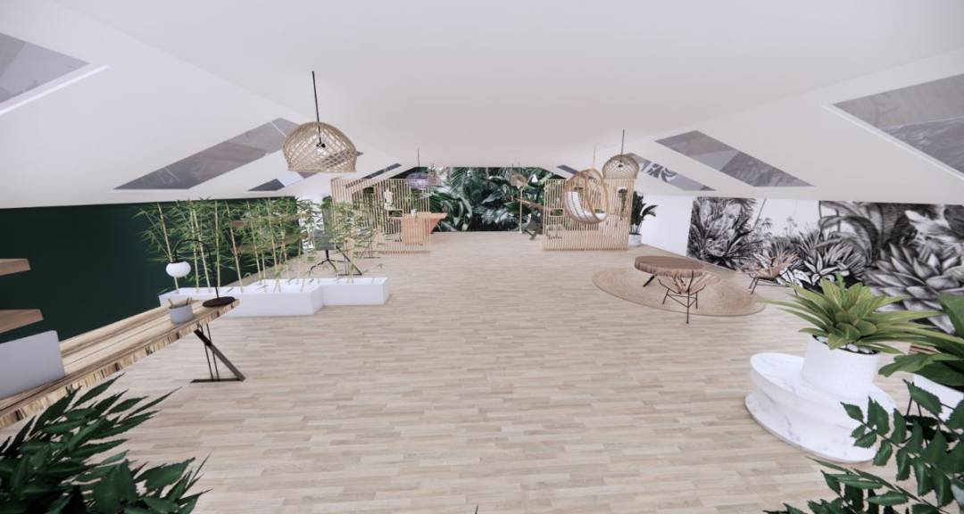 Le souhait de mes clients est d'aménager leur comble dans un esprit roofing, Jungle luxuriante. Dans cet espace de comble multi-fonctions, l'objectif était de réunir deux bureaux, deux ateliers et un espace détente.