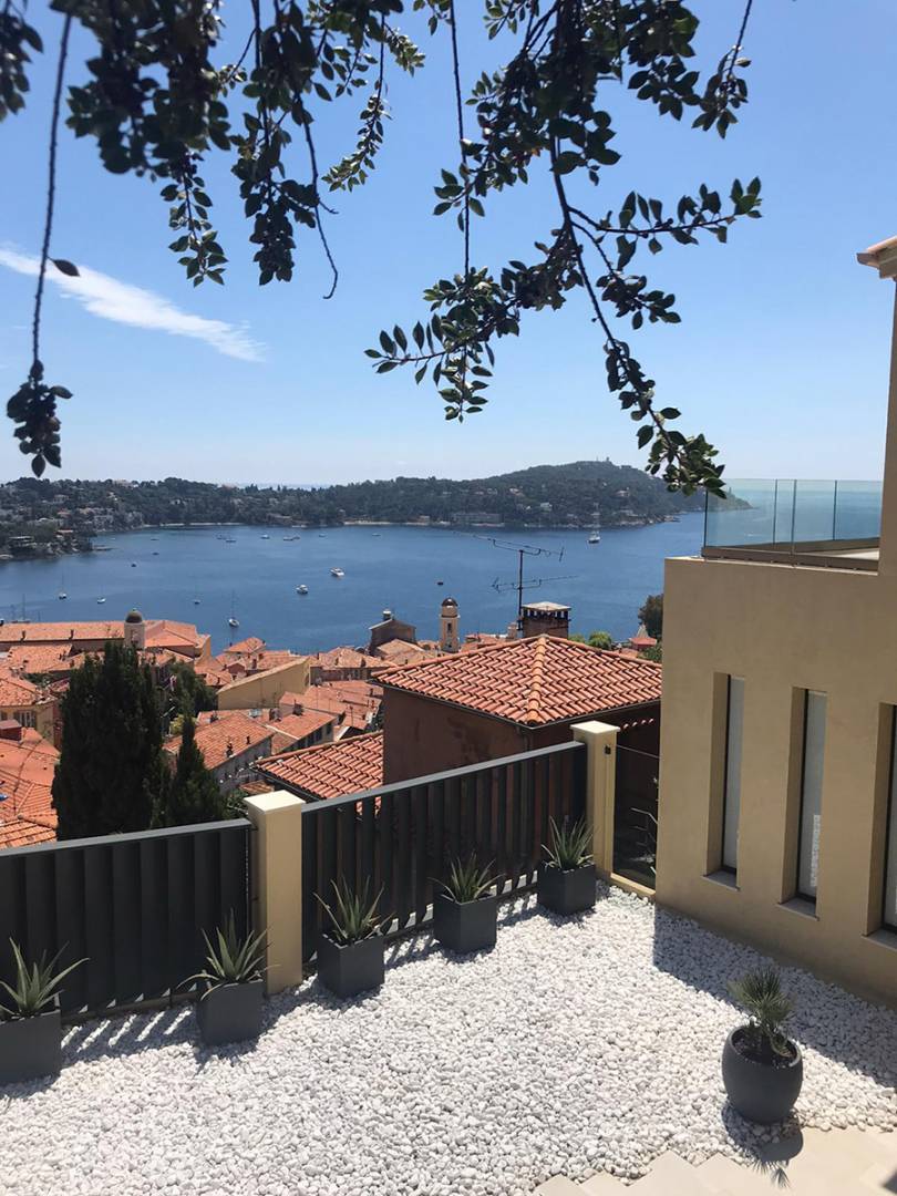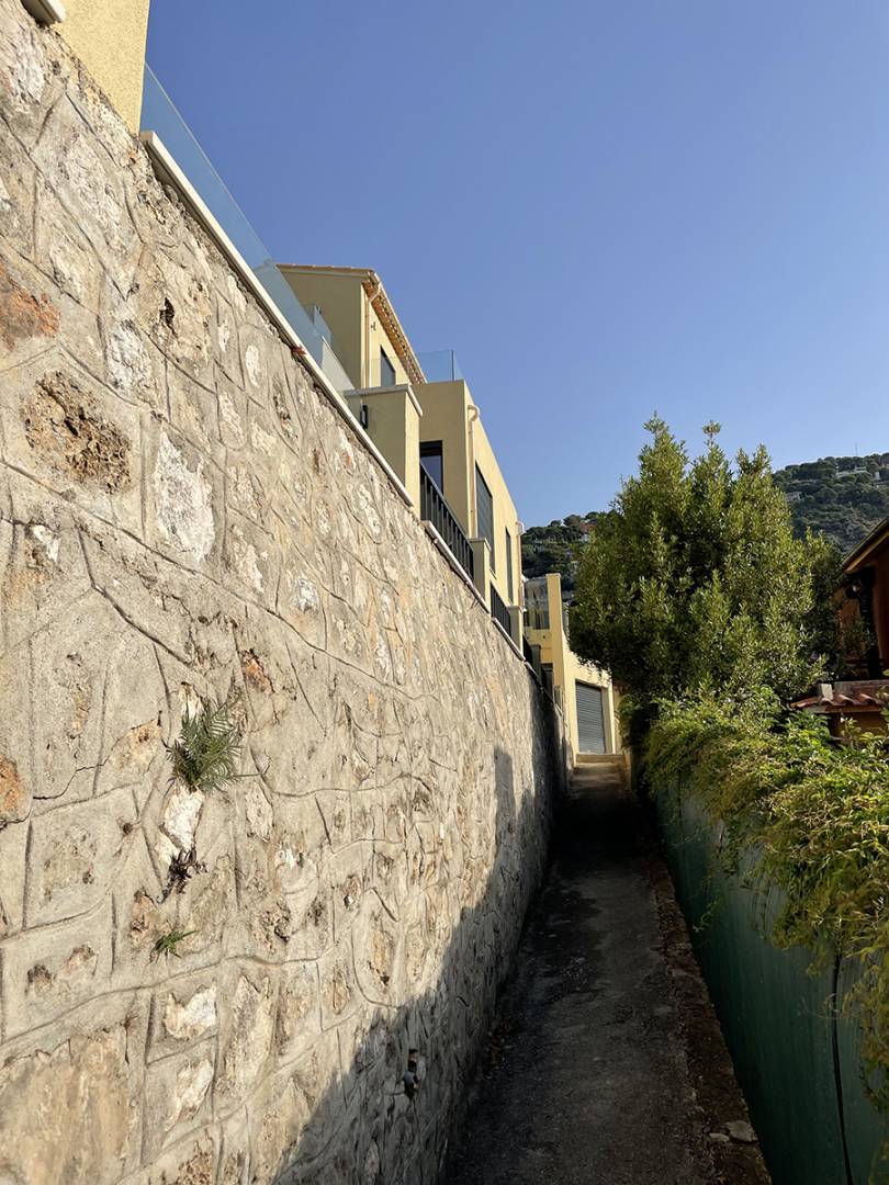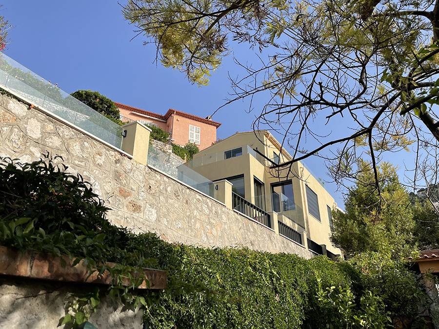 La maison a longtemps appartenu à ses anciens propriétaires et dispose d’un appartement séparé au niveau inférieur qui n’a pas été relié à la maison. Nos clients ont demandé que ce niveau soit accessible depuis le reste de la maison. Le niveau d’entrée dispose d’une cuisine avec un cellier caché et une cave à vin. Le niveau supérieur contiendra la suite principale et la suite d’invités, les deux avec leurs terrasses privées donnant sur la mer. Les escaliers sont fabriqués sur mesure en Allemagne et la cuisine et la menuiserie viennent de Pologne. Ce réaménagement complet de la maison, y compris le nouveau rendu, toutes les nouvelles fenêtres et portes, la climatisation, le nouveau câblage, la plomberie et la menuiserie sur mesure ainsi que le jardin seront achevés fin 2018 / début 2019.