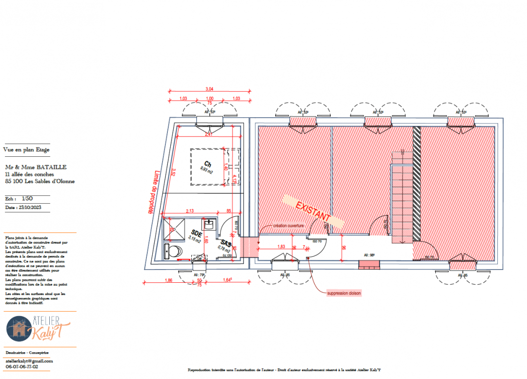 Projet de création d'un garage en RDC + surélévation du garage pour création d'une chambre, d'un WC et d'une Salle d'eau