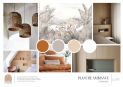 Pour ce projet, nous sommes chargées de transformer un garage en habitation. Nous sommes missionnées pour concevoir les plans, les planches ambiances, les visuels 3D, et les sélections de revêtement. Côté sud une extension de 9m2 sera réalisée pour agrandir la future pièce de vie. Pour gagner de la place, nous optons pour un grand linéaire de cuisine intégrant le coin repas avec banquette. Pour optimiser l’espace nuit au maximum nous intégrons la salle d'eau à la chambre et proposons de nombreuses solutions de rangements. Du côté de la décoration, nous suggérons une cuisine monochrome aux nuances de bleu ciel, rehaussée par une faïence orange vif pour évoquer l'esprit des années 70. Le reste de la pièce principale suivra la même esthétique, avec des tons doux de bleu ciel, rehaussés par des touches de bois, notamment au sol. L'ensemble sera dynamisé par des éléments rétro dans des tons orangés. Pour la zone nuit, nous maintenons la même palette chromatique. La salle d'eau adoptera une approche minimaliste en bleu ciel, agrémentée de détails noirs, notamment au niveau des robinetteries, et des accents de bois. Dans la chambre, nous créerons un espace chaleureux en mêlant des teintes orangées et des matières naturelles.