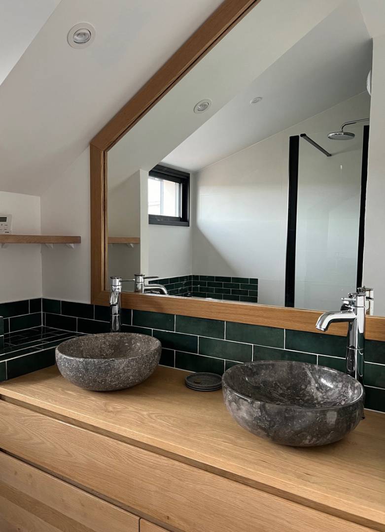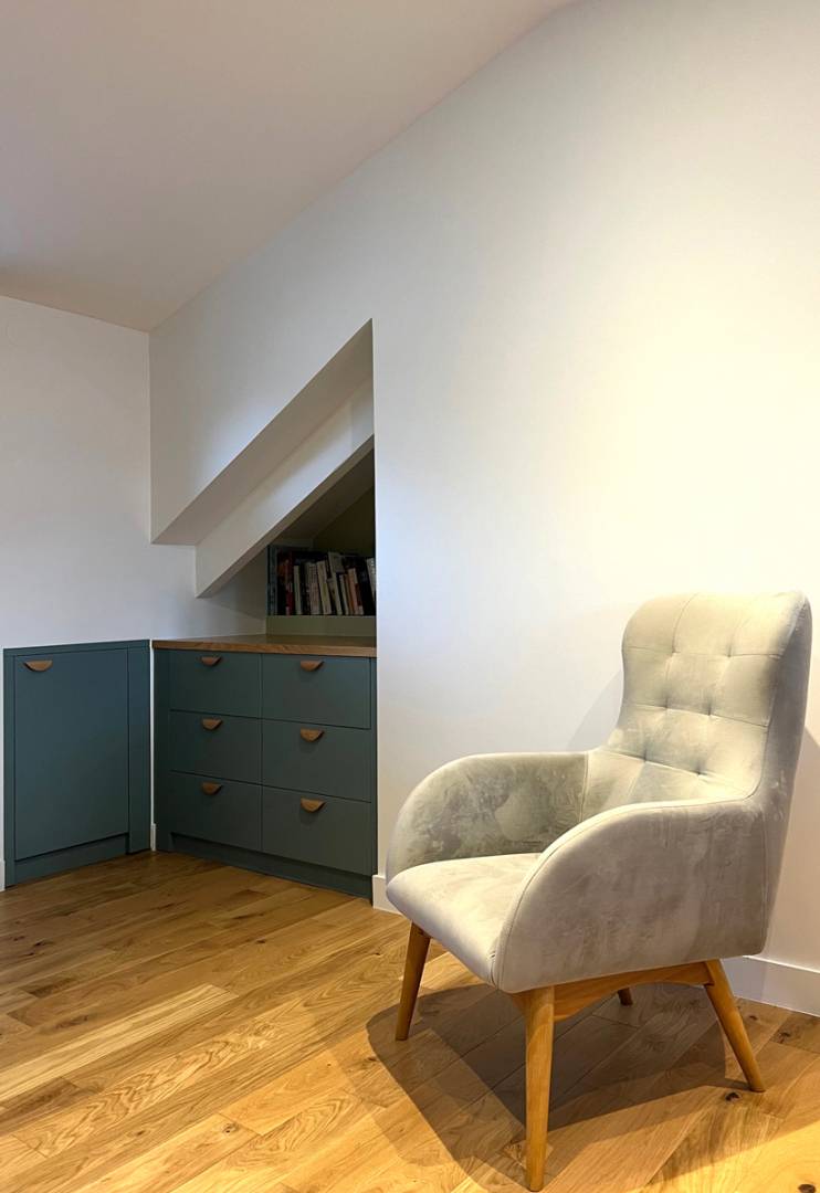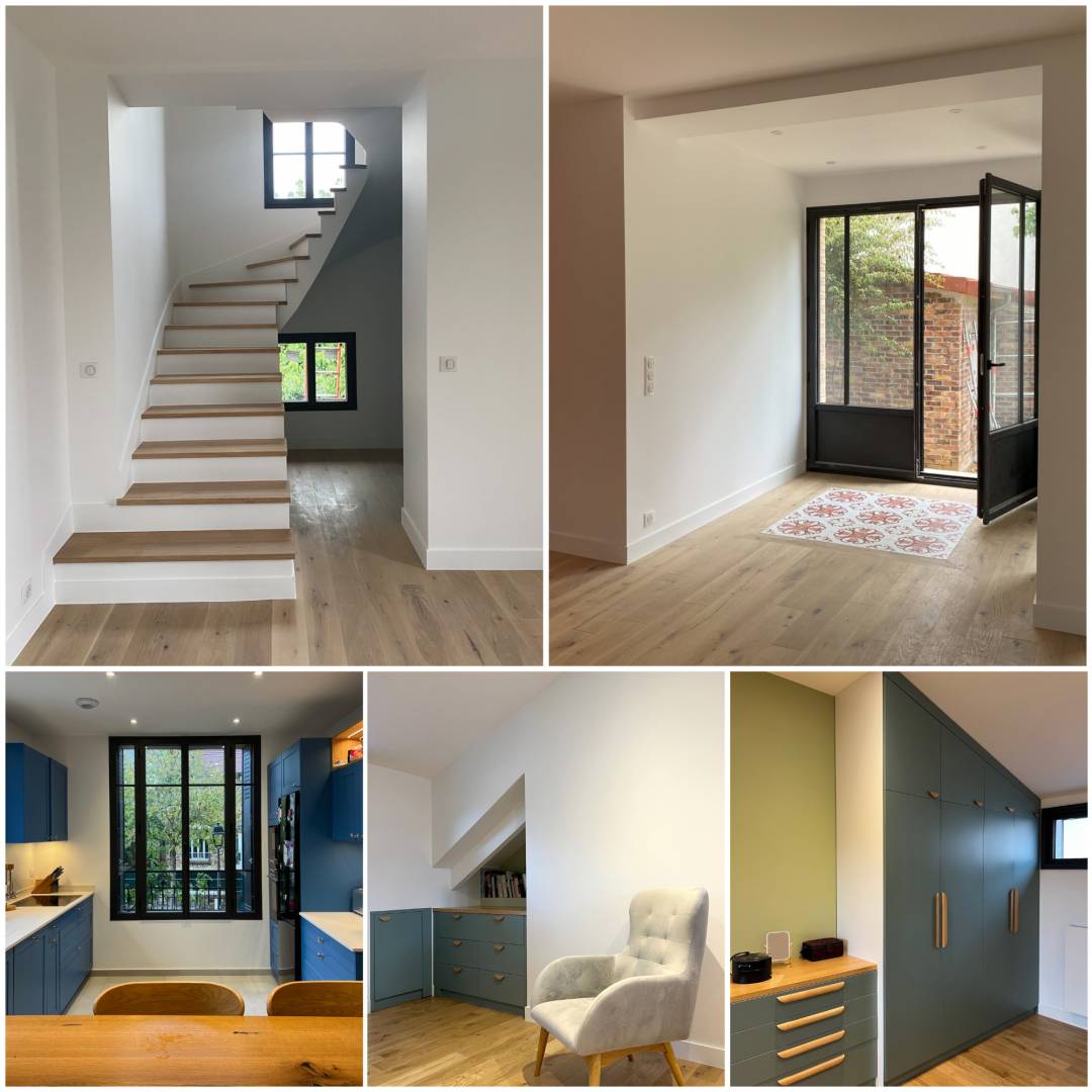 Restructuration globale de l'intérieur, modification de façade, extension, isolation, distribution des espaces, mobilier sur mesure et décoration