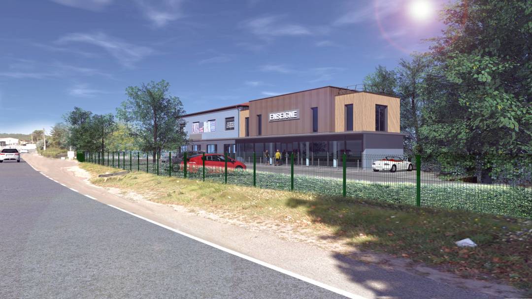 Situé en bordure de RD562, le projet réside dans la construction d’un local commercial sur deux niveaux d’une surface de plancher d’un peu plus de 450m². Il est en mitoyenneté avec un bâtiment commercial existant relativement imposant et borde un cour d’eau à l’est.
