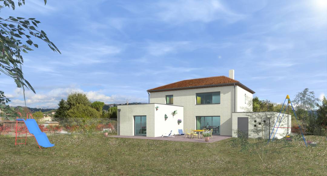 Cette villa est composée d’un volume principal en R+1 animé par deux éléments bas en simple RDC .