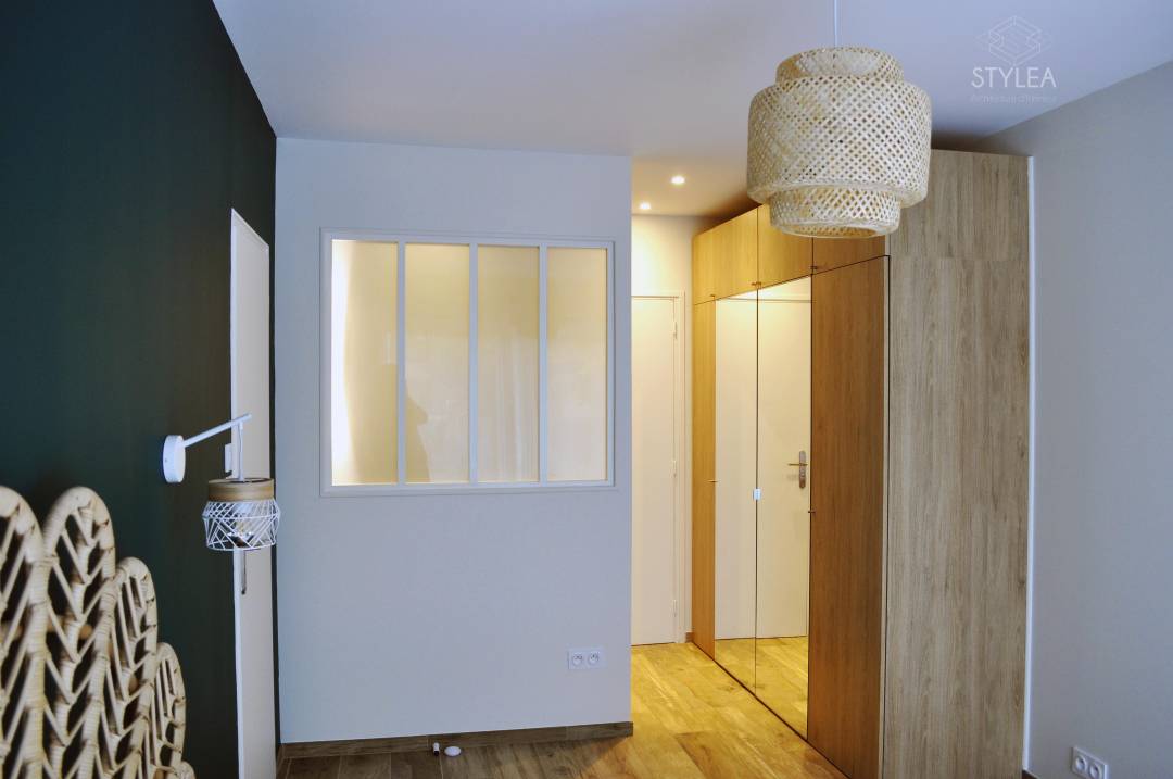 Cette famille a fait appel à moi pour créer un espace parental au sein de leur nouvelle maison. Le grand cellier accolé à un ancien garage déja transformé en chambre a été le point de départ de la restructuration des espaces. J'ai donc pu proposer une grande suite parentale avec une salle d'eau semi ouverte ainsi qu'un WC indépendant et un grand espace dressing. Un défi technique car il a fallu trouver le bon artisan pour déplacer la chaudière à gaz qui nous génait dans la rélisation de ce projet. Challenge relevé avec la livraison d'un chantier clé en main, été 2022.