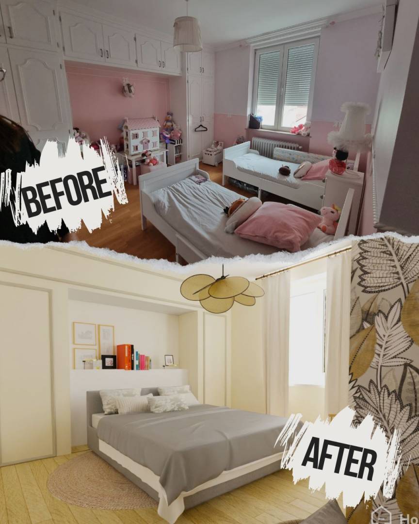 La rénovation a été réalisée en terme d'électricité , de peinture et de création d'éléments sur-mesure dans différentes pièces comme le tête de lit par exemple .