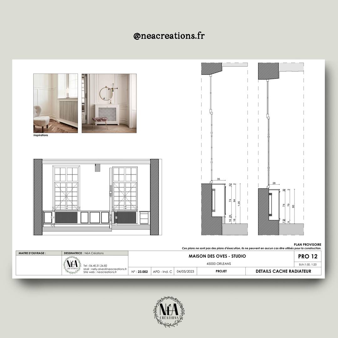 Réalisation de plans pour la restauration et l'aménagement intérieur d'un studio indépendant, situé Rez de Chaussée, monument Historique, comprenant un appartement en logement locatif saisonnier.
