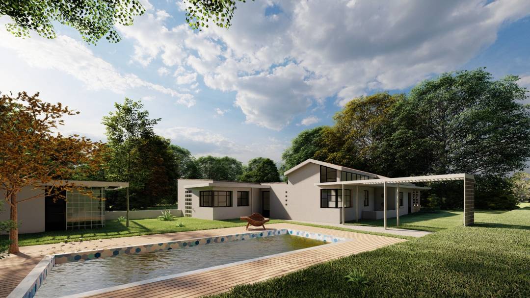 La petite maison se transforme en belle maison de 210m² avec une piscine.