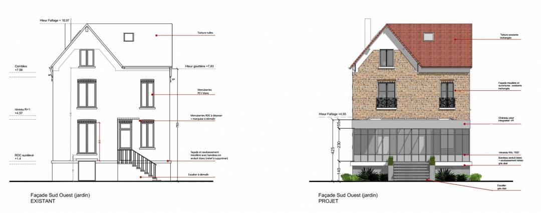 Le projet consiste en la construction d’une véranda dans la continuité du rez-de-chaussée surélevé côté jardin