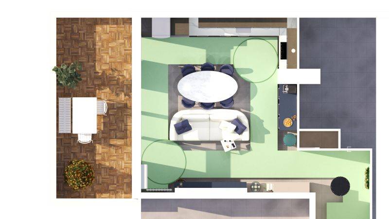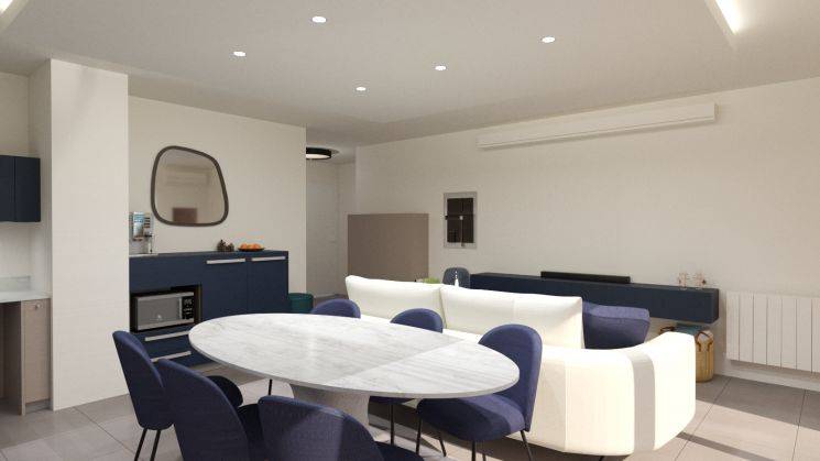 Ré-aménagement de la pièce de vie et de la cuisine d'un apprtement pour le rendre adapté à un usage en fauteuil roulant. Réalisation prévue pour le 2ème trimestre 2024.