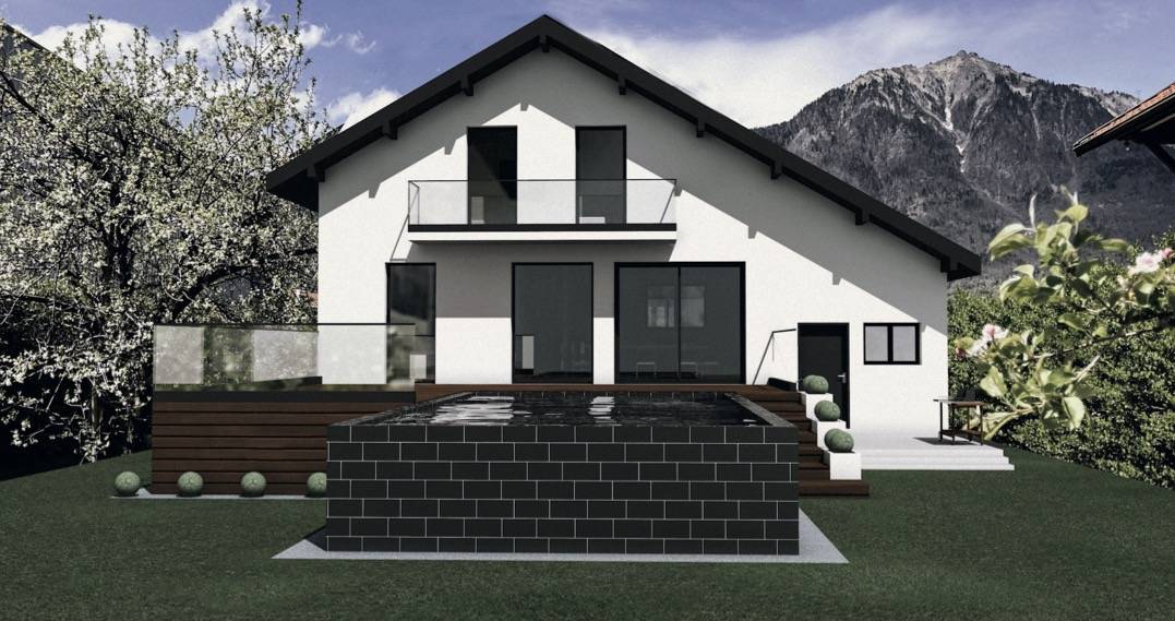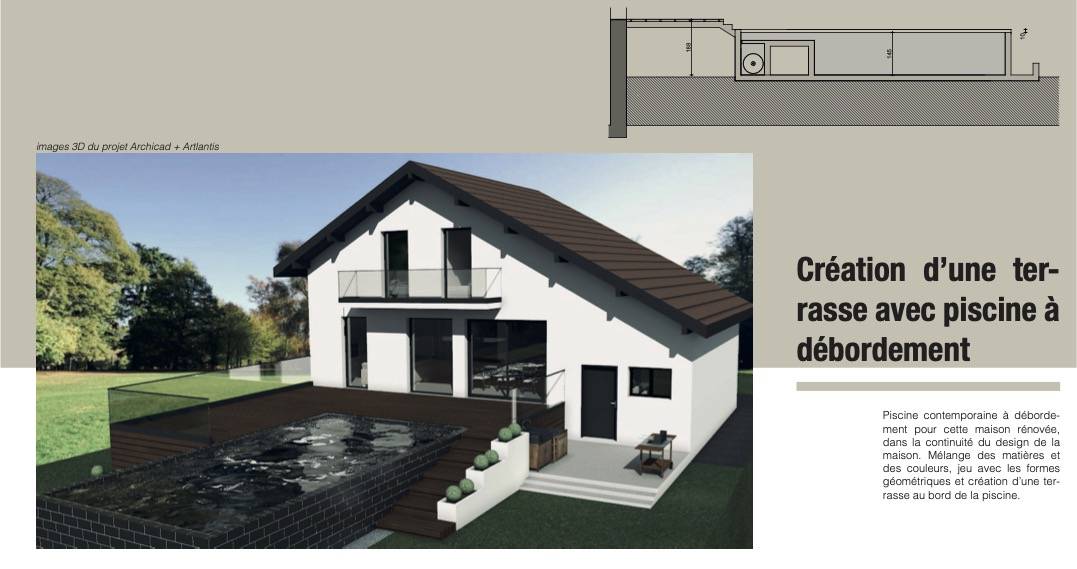 Création d’une terrasse avec piscine à débordement Piscine contemporaine à débordement pour cette maison rénovée, dans la continuité du design de la maison. Mélange des matières et des couleurs, jeu avec les formes géométriques et création d’une terrasse au bord de la piscine.