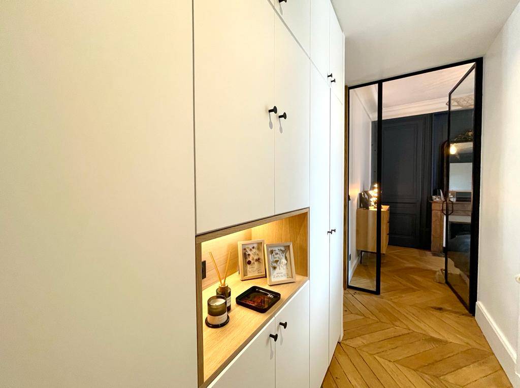 Rénovation complète d'un studio de 47 m² au coeur de Lyon transformé en T2. Les espaces ont été entièrement repensés (création d'une chambre, déplacement de la cuisine vers l'espace salon, rénovation des parquets, création de rangements...). Un beau challenge pour ce très bel appartement dont l'objetcif était de remettre en valeur son cachet d'origine et d'optimiser les espaces.