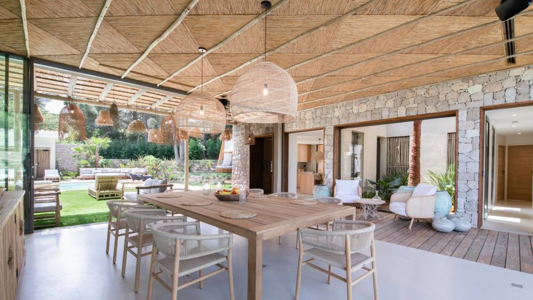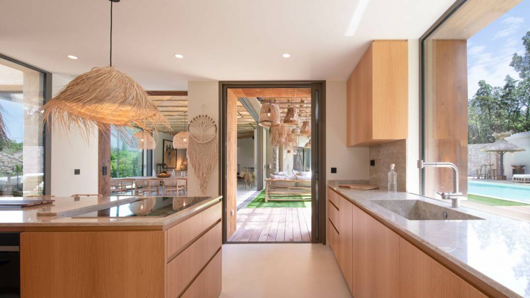 Aménagement d'une villa neuve sur la côte méditerranéenne : choix des matériaux et du mobilier, consultation et choix des entreprises locales, réalisation d'un budget et suivi de commandes. Les moindres petits détails ont été pensés : plafond en eucalyptus, décoration en rotin, osier, herbe tressée, tissu en lin froissé, tadelakt, béton ciré, bois flotté, bois massif, peintures à la chaux…