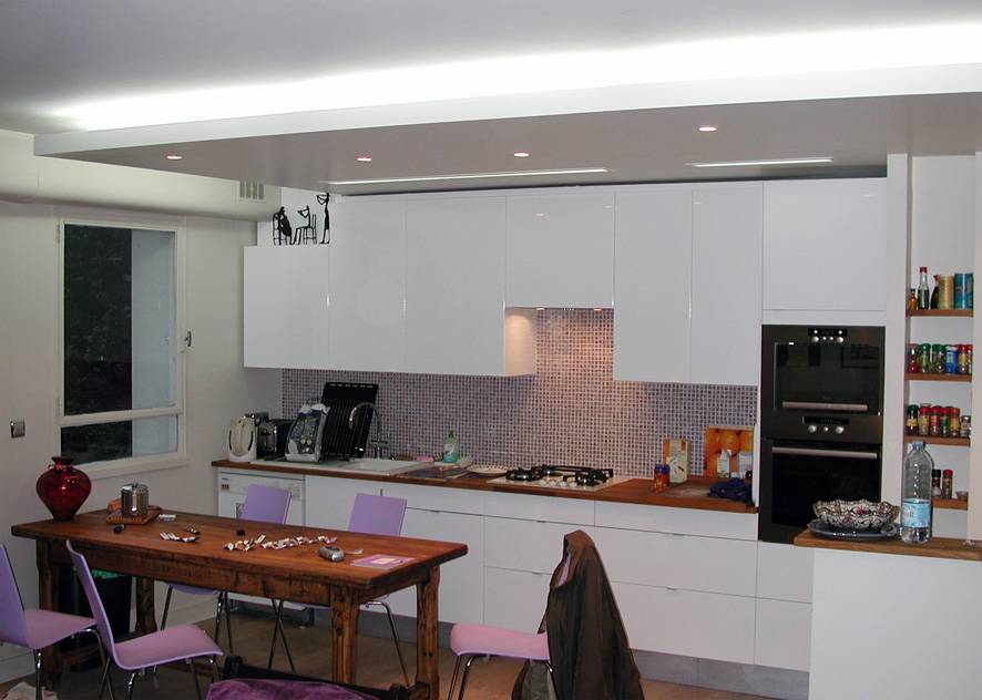 Mes clients ont acheté cet appartement dans un immeuble des années 70 et ont souhaité le rénover en ayant une ambiance à leur image "gaîté" et "dynamisme". Pour cela, la cuisine a fait l’objet d’une ouverture totale sur les autres pièces à vivre, salon et salle à manger. Une ambiance cosie et conviviale, avait été également la demande de mes clients. Pour répondre à cela, un faux-plafond a été mis en place afin d’apporter une lumière sous différents angles comme l’utilisation de spots ou enfin des goulottes lumineuses. Pour les espaces communs comme la salle de bains nous l’avons mis au goût du jour.