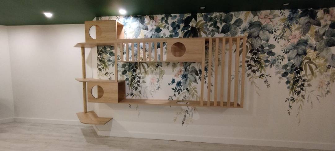 Le projet Miaou c’est ma cliente, mais aussi quatre chats et trois chiens à satisfaire. Suite à l’achat d’une maison sur St-Jean de Védas, ma cliente m'a missionné pour faire de cette maison, sa dernière maison comme elle le dit, un véritable nid douillet pour elle et ses animaux. On change la cuisine, réaménage l’entrée, refait la peinture a neuf, on ajoute un poêle et on crée un véritable espace mural pour ses chats.