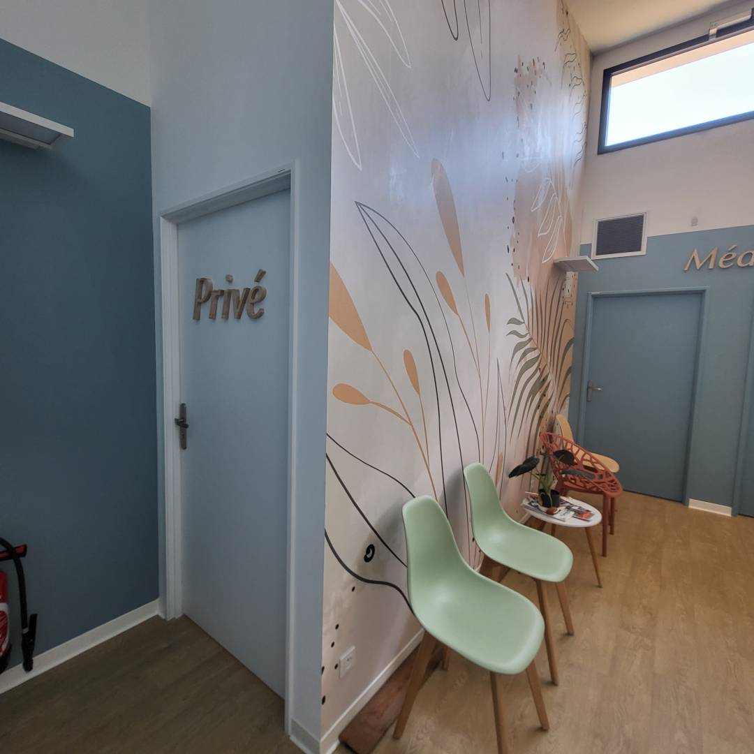 Le projet Good Doctor, c’est la création d’un cabinet médical sur Pignan accueillant neuf professionnels, médecins, kinésithérapeutes et infirmiers. L’objectif, trouver un décor chaleureux et agencer la salle d’attente de manière à accueillir une quinzaine de chaises. J’ai identifié chaque service par une couleur et indiqué la fonction par des lettrages en bois réalisé par une artisane de mon réseau.