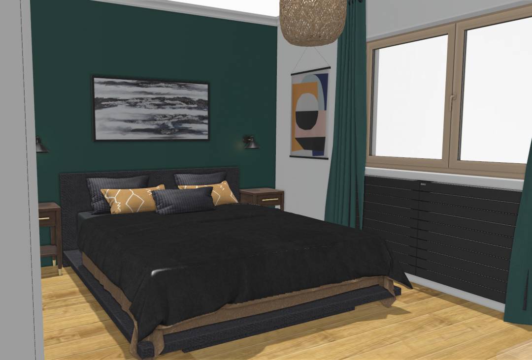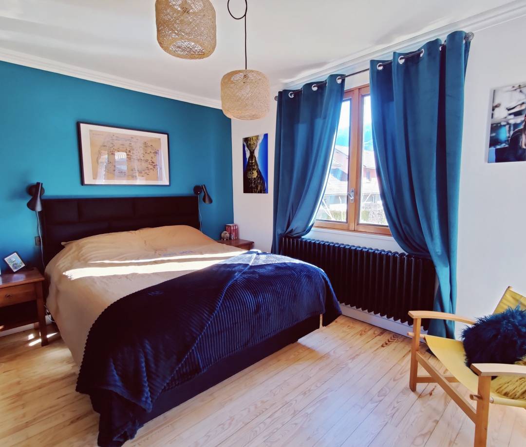 De A à Z, le rose se transforme en bleu. Objectif de cette chambre parentale: travaux et décoration. En premier, Changer la couleur, les murs, le sol, rester sur la même ligne de couleur que la maison. Le Bleu, Ici c'est un bleu canard à texture touché velours. Et sans oublier le bois. En deuxième, le confort pour un bon sommeil. "literie des alpes", @franceliterie . Tête de lit brique et tissu bouclé noir. Et linge de maison en pur coton. En troisième, ma petite touche personnelle, une décoration de seconde main, unique et personnelle. Comme, les Tables de chevet des années 90 en teck de sangapour. Elles ont bien voyagé. Le cadre avec une carte du summer palace de chine (souvenirs personnel d'un voyage en Chine) Et pleins d'autres petites pépites d'installées dans cette chambre.
