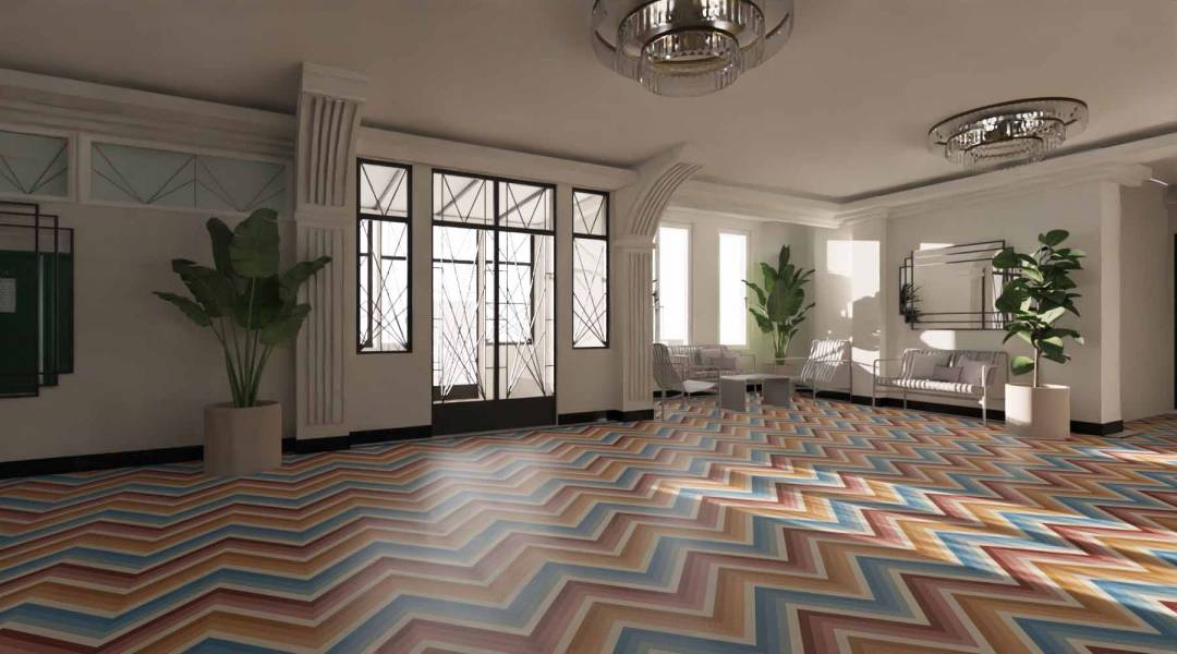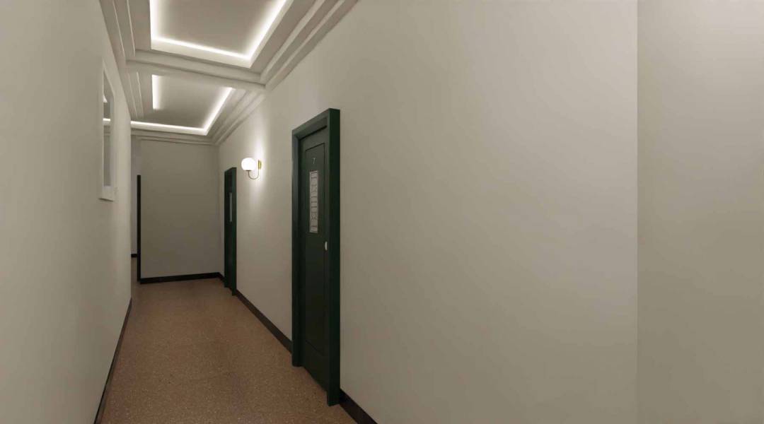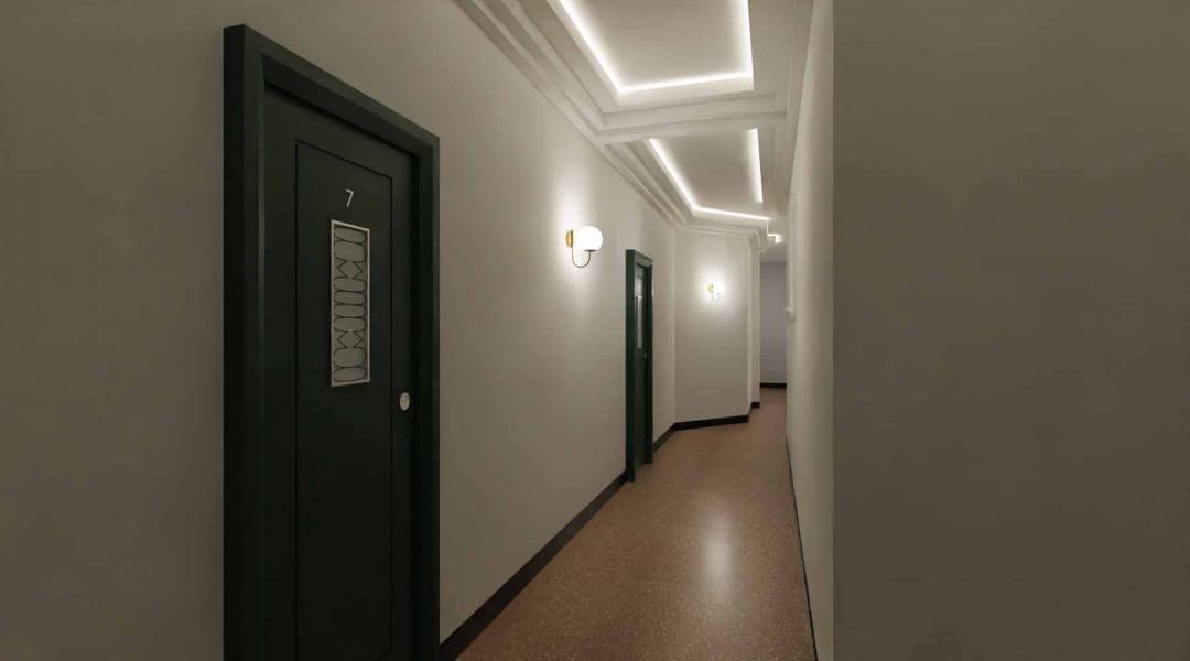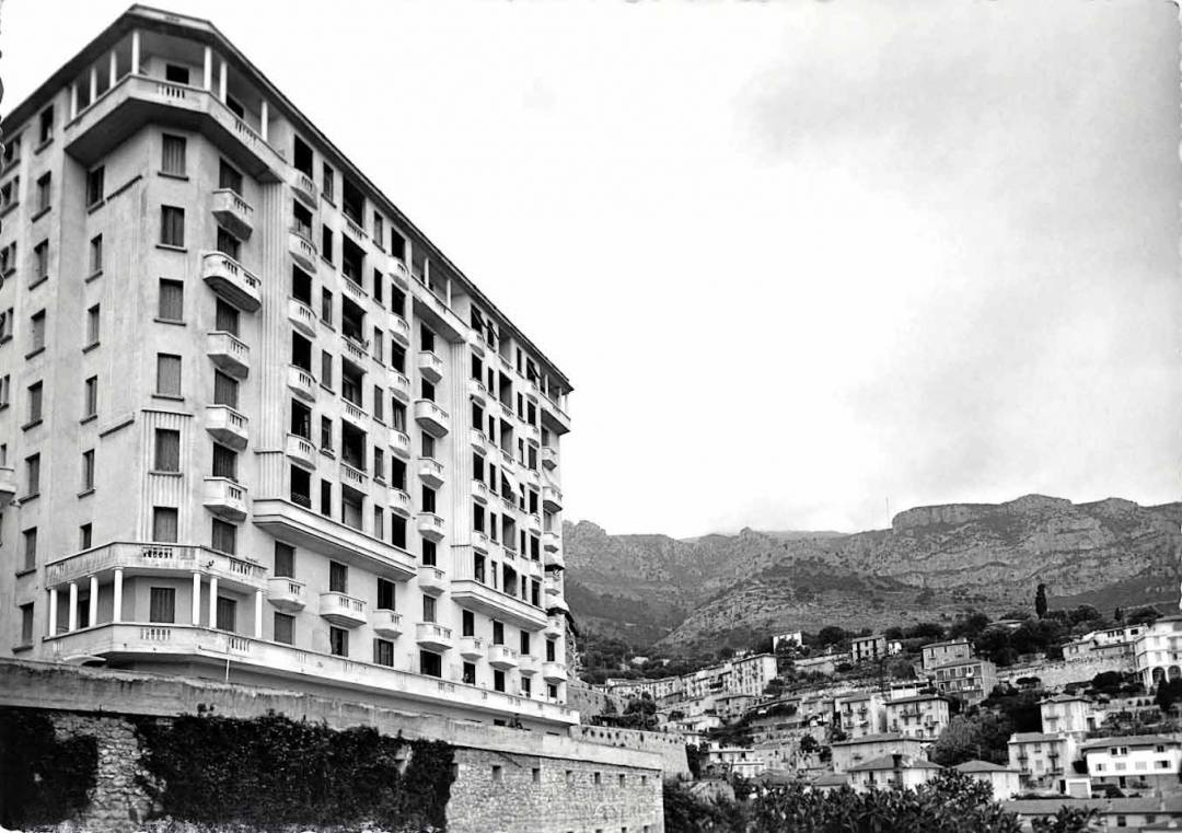 Le palais est un ancien hôtel de huit étages construit dans le style Art Deco par l’Architecte Paul Clavier. L’hôtel a ensuite été transformé en une copropriété en 1982. La façade blanche et élégante est rythmée par des fenêtres, balustrades et balcons; l’accès se fait au quatrième étage par une passerelle tapissée d’élégantes  mosaïques. Les parties communes sont aujourd’hui en état de vétusté. Le projet prévoit leur rénovation en cohérence avec le style de l’époque avec la mise en place des moulures et des corniches pur une redistribution globale de l’électricité. Des interventions ponctuelles sont prévues pour la restitution des mosaïques d’origine et les baies vitrées situées aux entrées du bâtiment. La terrasse côté mer; aujourd’hui inutilisée, sera végétalisée pour permettre aux copropriétaires une réappropriation de l’espace. Photos © Archives Municipales Beausoleil