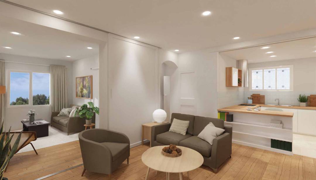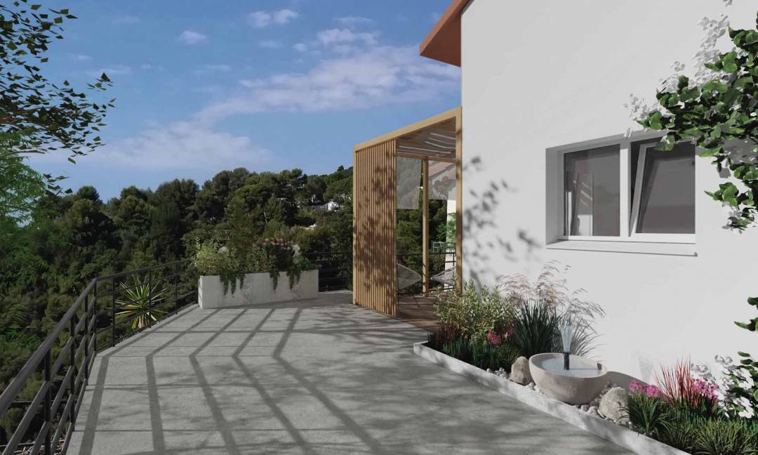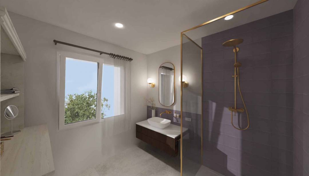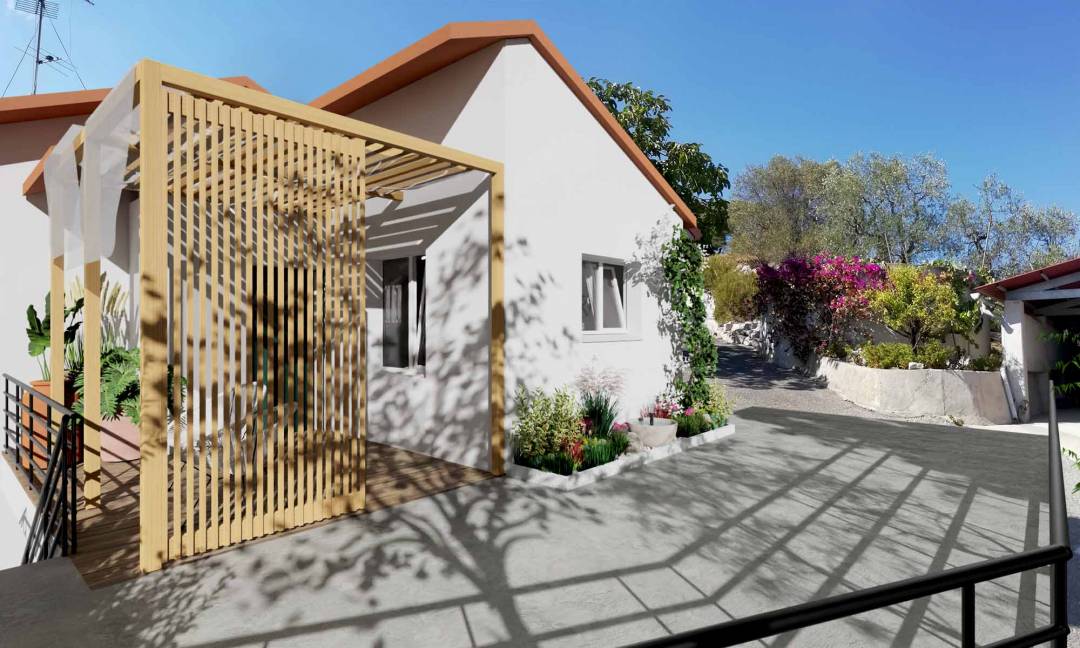 La maison construite dans les années ’50 est située dans le quartier de la Poudrière avec une belle vue mer. Le souhait de la cliente est d’aménager l’ensemble de la maison dans une démarche écologiste. L’autonomie énergétique est à la base de chaque intervention. La maison a un terrain agricole limitrophe; la récupération des eaux pluviales permettra d’utiliser une partie de l’eau pour l’arrosage des arbres fruitiers et une autre pour l’usage domestique.