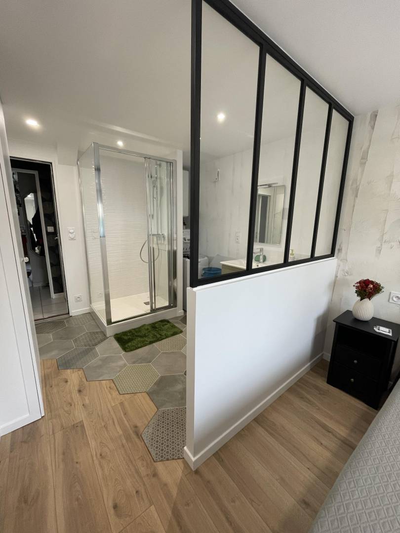 Pour ce projet, j'avais fait une estimation travaux pour une extension au départ mais la cliente n'avait pas le budget suffisant, nous avons donc travaillé l'existant de sa maison sans dénaturer sa maison. Elle n'utilisait pas son garage, nous avons donc fait quelque chose qui s'harmonise au mieux et adapté également adapté à sa personnalité.