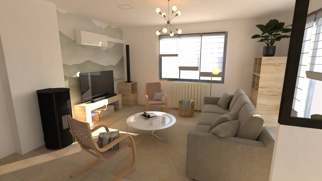 P. change de vie bientôt et souhaite rénover sa maison de vacances en vue de s’y installer à temps plein. L’espace ouvert cuisine / salon n’a pas été modifié depuis 20 ans. Philippe est célibataire, il aime regarder le sport à la TV, recevoir des amis, cuisiner, et les activités de plein air (pêche, cueillette, …). Philippe aime les tons clairs, pastels, le noir et blanc, les environnements visuels sobres, et souhaite conserver plusieurs de ses meubles qu’il faudra intégrer à la décoration.
