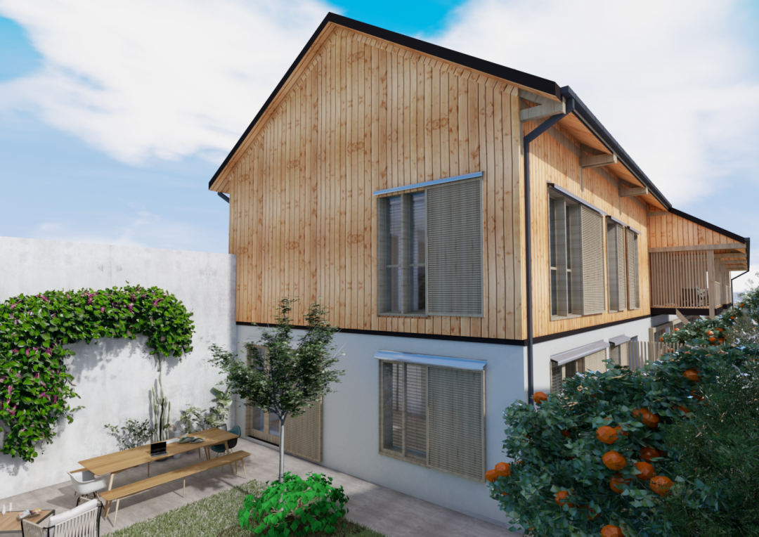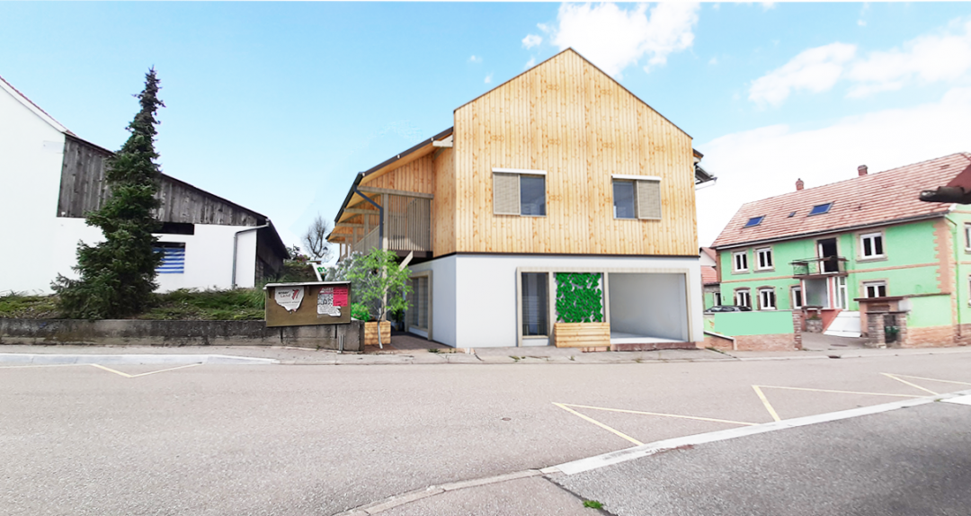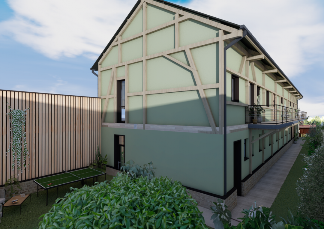 Le projet consiste en la réhabilitation d’un bâtiment agricole en un collectif d’habitations et des activités professionnelles ou commerciales. Des esquisses permettent la mise en œuvre de 4 à 8 logements selon les mètres carrés réhabilités et les choix de typologies de logements. Une première proposition se compose de 4 logements au 1er étage et d’un local d’activité au rez-de-chaussée. La particularité de cette esquisse réside dans l’accès des logements par une coursive balcon sur la façade Ouest du bâtiment. De grandes baies vitrées à l’Est illuminent les pièces de vie. Ce projet propose un jardin partagé entre les 4 habitations. Une autre proposition se compose de 5 logements avec des typologies variées allant du T3 au T6. Le T6 se situant à l’arrière du bâtiment s’organise comme une maison triplex, avec un accès direct au rez-de-chaussée et son jardin privatif. Les autres logements bénéficient chacun d’un balcon sur la façade Ouest ou Est. Cette proposition propose un grand local commercial ou professionnel donnant sur la rue Principale. Pour prendre part à ce projet, vous pouvez nous contacter pour être mis en relation avec le responsable immobilier en charge du montage financier. Ces propositions se veulent évolutives avec les nouveaux porteurs du projet.