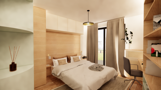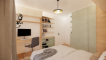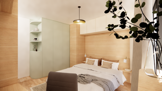 Transformer une chambre qui servait jusqu'à lors de dressing en chambre parentale avec un espace rangement et bureau, le tout dans des tons naturel de vert, de bois pour une ambiance apaisante et relaxante.