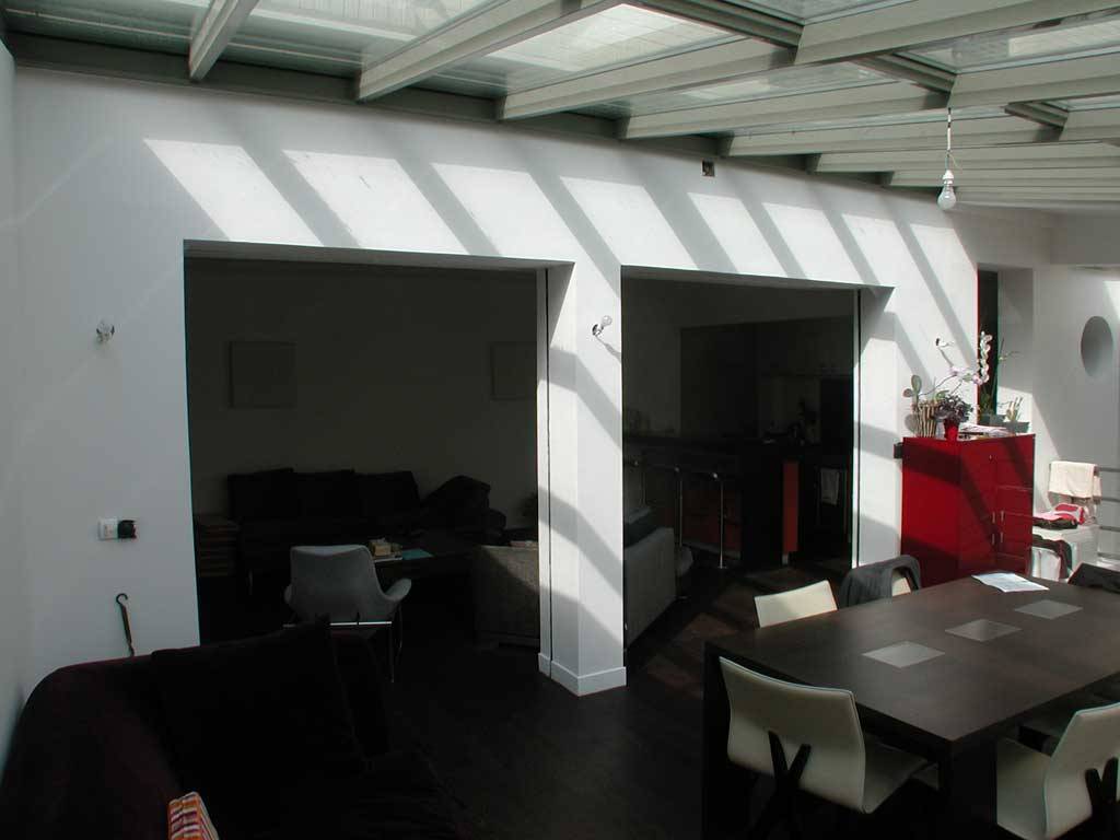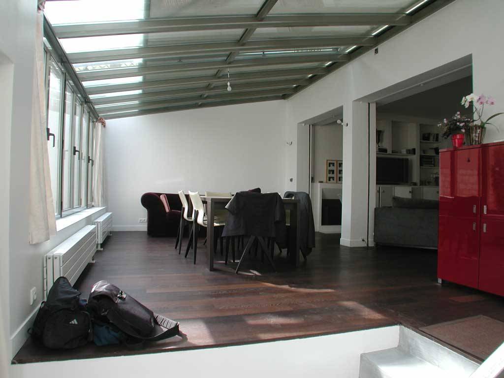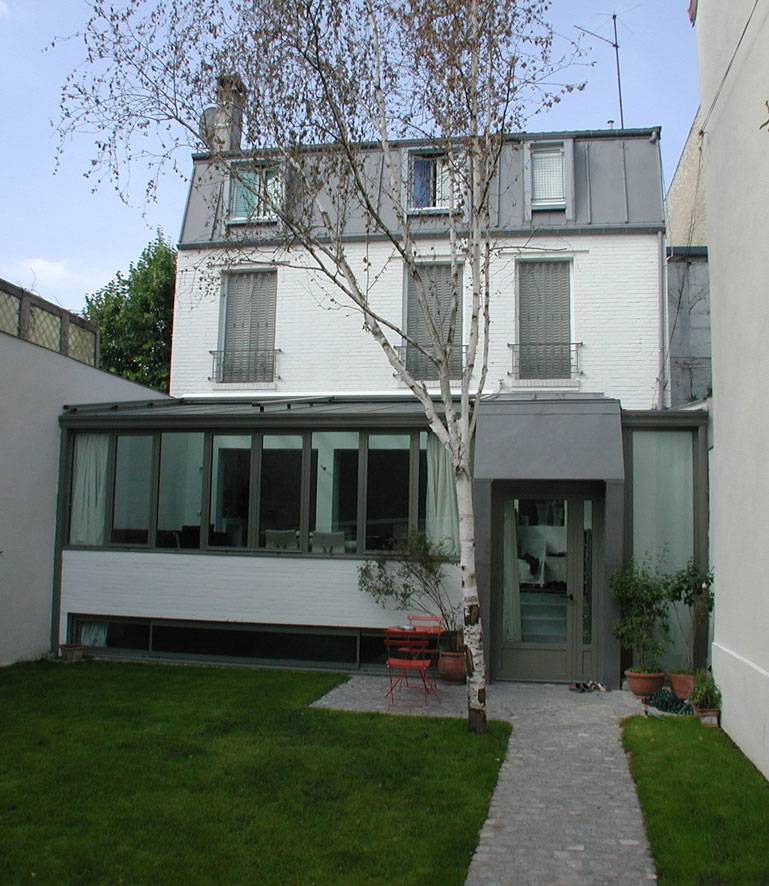 Cette extension a été réalisée pour un couple parisien souhaitant agrandir les espaces communs. Ils ont donc choisi de créer une véranda dans le but de créer une pièce à vivre supplémentaire notamment pour une salle à manger.