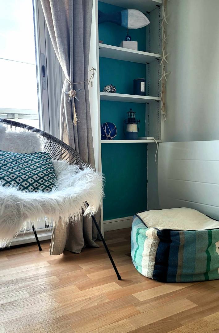 Cette opération concerne la modernisation d'un appartement T2 situé sur la côte des Hauts-de-France. Le client souhaitait un appartement qui évoque l'ambiance et l'esthétique de la mer. Les travaux comprennent l'achat de nouveaux meubles, la restauration de certains éléments existants, le remplacement complet de la cuisine en réutilisant les meubles existants, la peinture de l'intégralité de l'appartement, l'installation d'un nouveau revêtement mural dans la chambre, ainsi que l'ajout de diverses décorations.