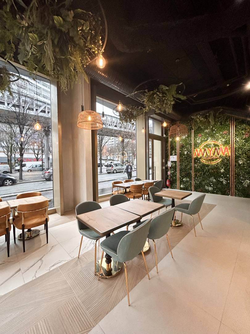 Le projet Mayam est un aménagement complet d'un restaurant de 175 m2. Les clients souhaitaient une ambiance chaleureuse tout en gardant l'aspect brut du local avec son plafond et ses belles baies vitrées toutes hauteur. Nous avons revu l'aménagement intérieur entièrement, en salle comme dans les locaux techniques. Nous avons accompagné nos clients de la conception (choix des matériaux, choix des mobiliers, mobiliers sur mesures,...) jusqu'à la livraison du restaurant.