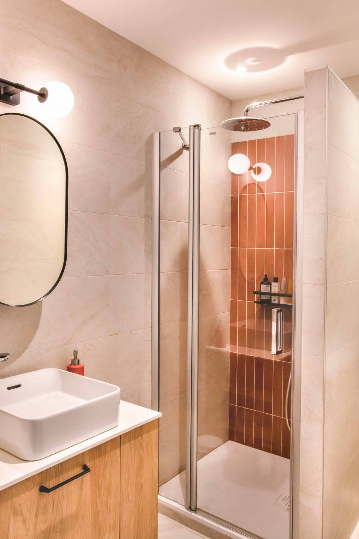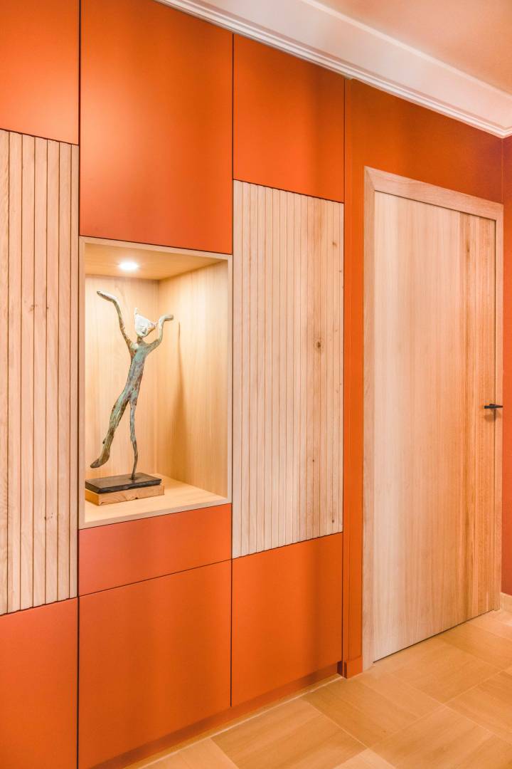 Des couleurs chaleureuses et des aménagements sur mesure donnent une vraie personnalité à cet appartement qui correspond parfaitement aux goûts de ses occupants.